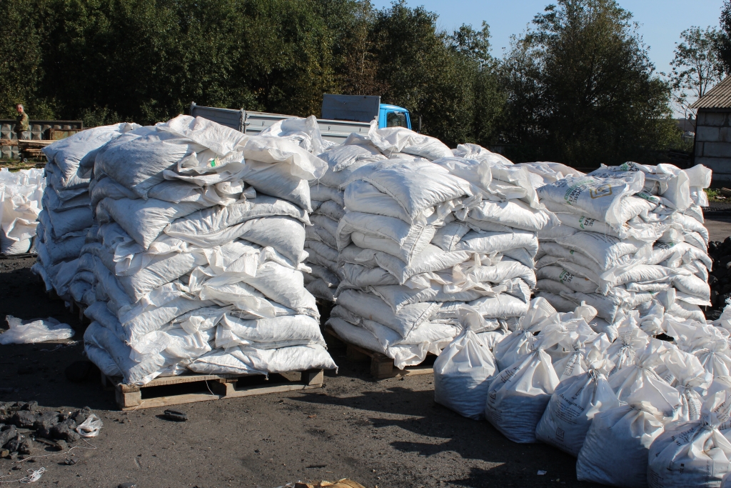 Осуществляем фасовку и погрузку угля в БИГ БЭГ весом по 0,5 и 1 тонне